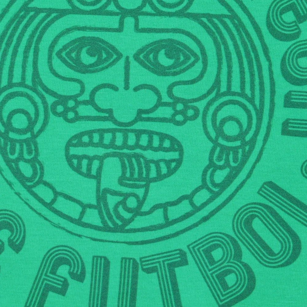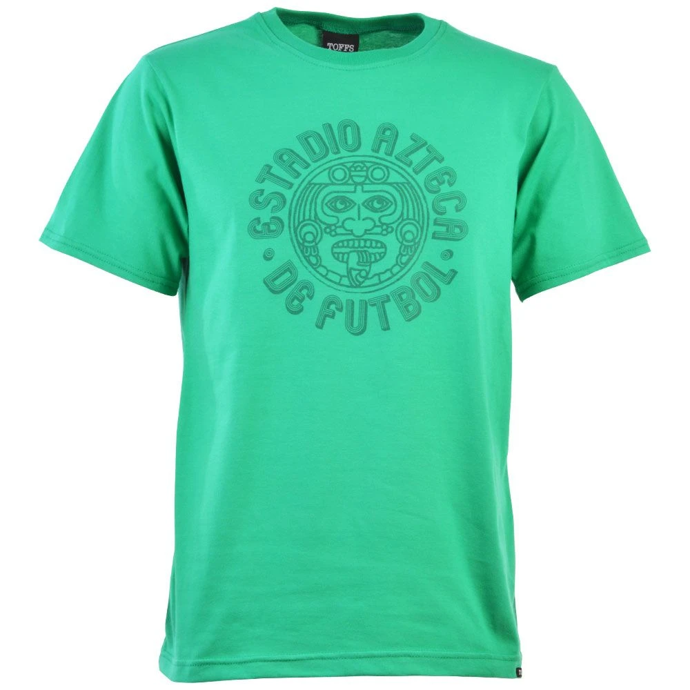 This t-shirt features a vibrant forest green base, providing a bold backdrop for the detailed digital illustration of Mexico City’s legendary Estadio Azteca. The artwork captures the unique architectural silhouette of one of the world’s most famous sporting venues in a clean, modern style.