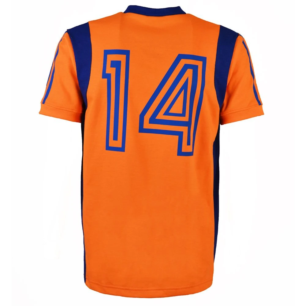 We have created a replica of the away jersey worn during the season Johan Cruyff played for the NASL team LA Aztecs. The shirt is an orange body with royal panels and stripes down the sleeves, this shirt also comes with Cruyffs number 14 on the left chest and on the back. If you wish to change the number, please place your order by contacting us via email: [email protected] or by calling (+44) 01914913500 and we will be happy to change it for you. Disclaimer: changing the number or adding a surname means that the shirt will then be non returnable.