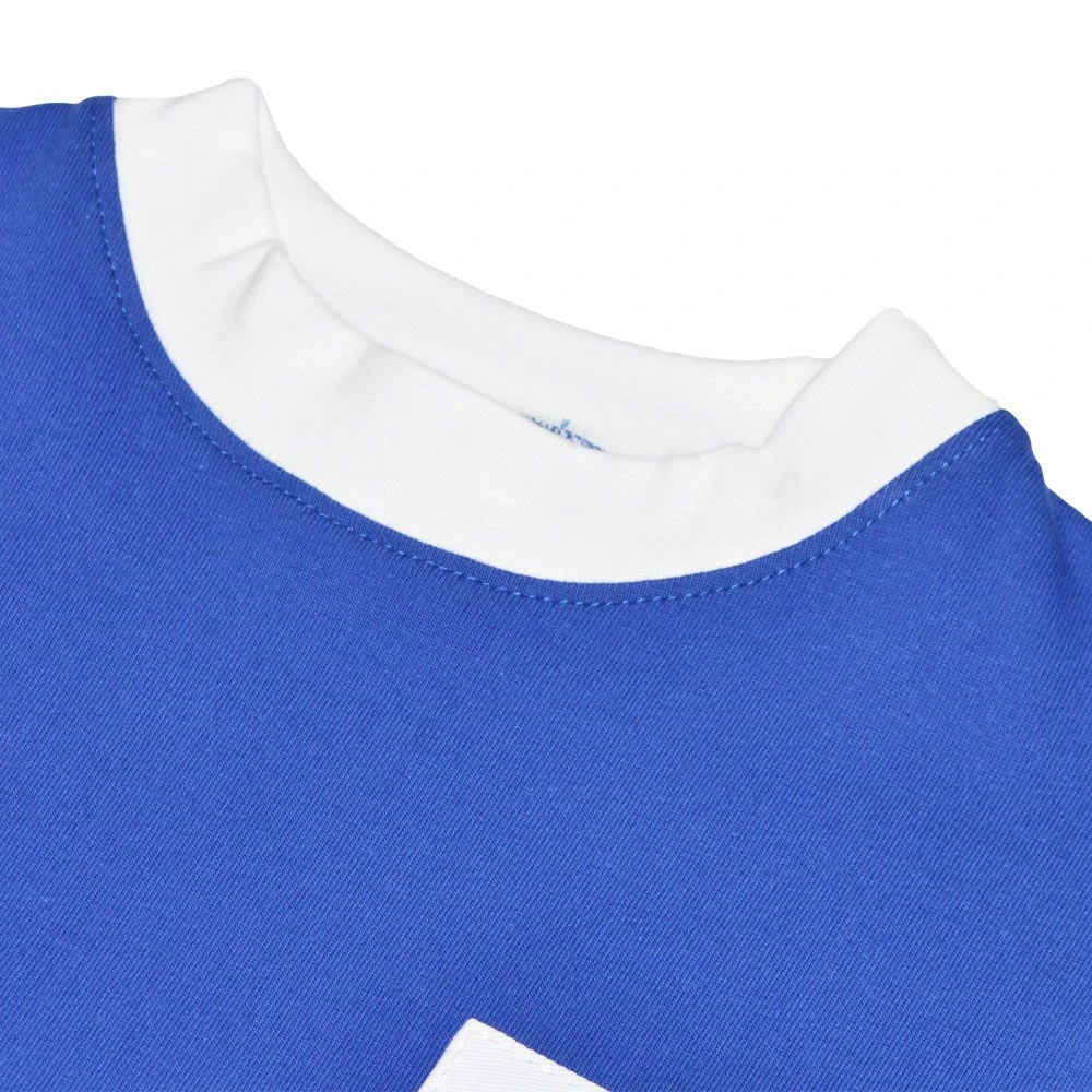 This shirt features the classic deep royal blue body synonymous with Linfield FC, accented by a crisp white round neck collar. The long-sleeve design provides a true vintage silhouette, while the meticulously embroidered club badge on the chest adds an authentic finishing touch for any dedicated supporter.