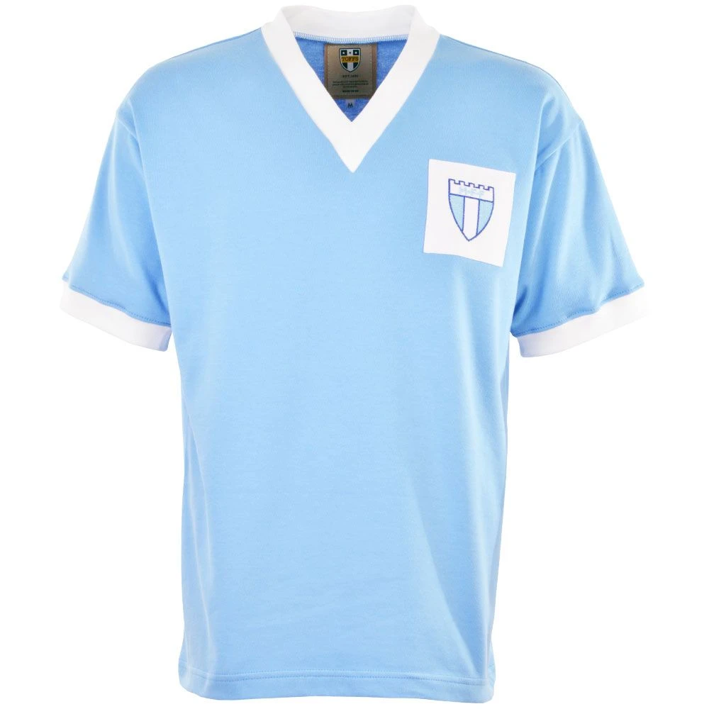 Visual Details: This shirt features the iconic Malmo sky blue colorway, accented by a classic white V-neck collar. The chest is adorned with a high-definition embroidered badge, staying true to the vintage aesthetic of the 1960s. The short-sleeved silhouette and heavy-knit texture provide a premium, substantial feel that modern replicas often lack.