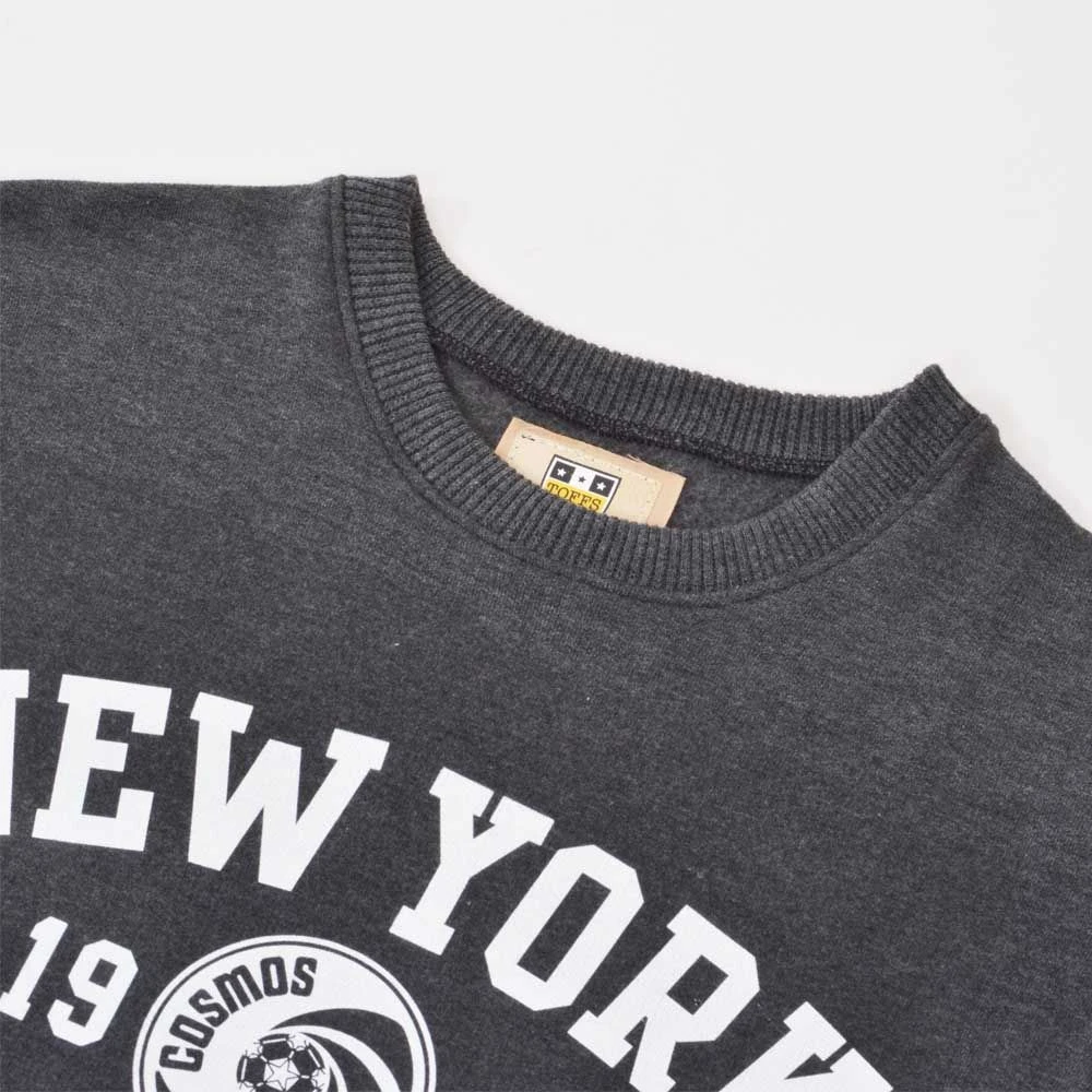 This charcoal grey crew neck features the iconic NY Cosmos crest in a crisp, clean white digital print, offering a high-contrast vintage look that stands out against the dark heathered fabric. Perfect for match days or casual wear, this piece combines soccer heritage with modern comfort.