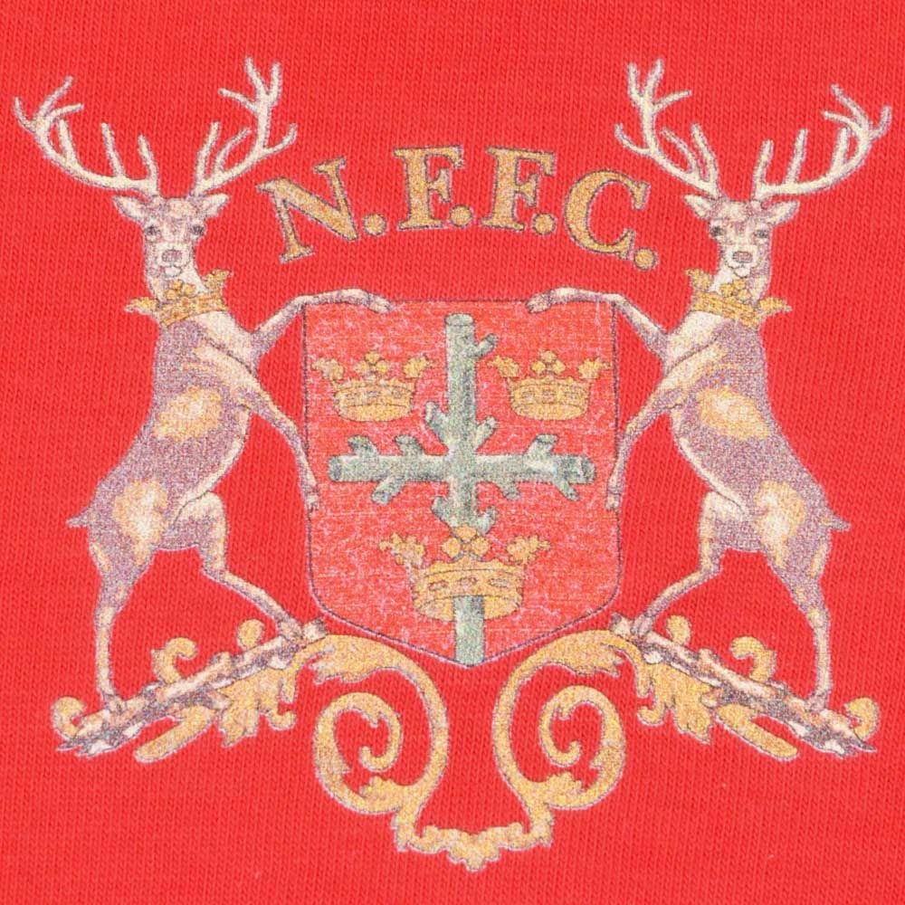The centerpiece is a high-quality digital illustration of a passionate supporter wearing the iconic red scarf, framed by bold ’12th MAN’ and ‘NOTTINGHAM FOREST’ typography. The contrasting red ringer trim adds a retro touch to this modern fan essential.