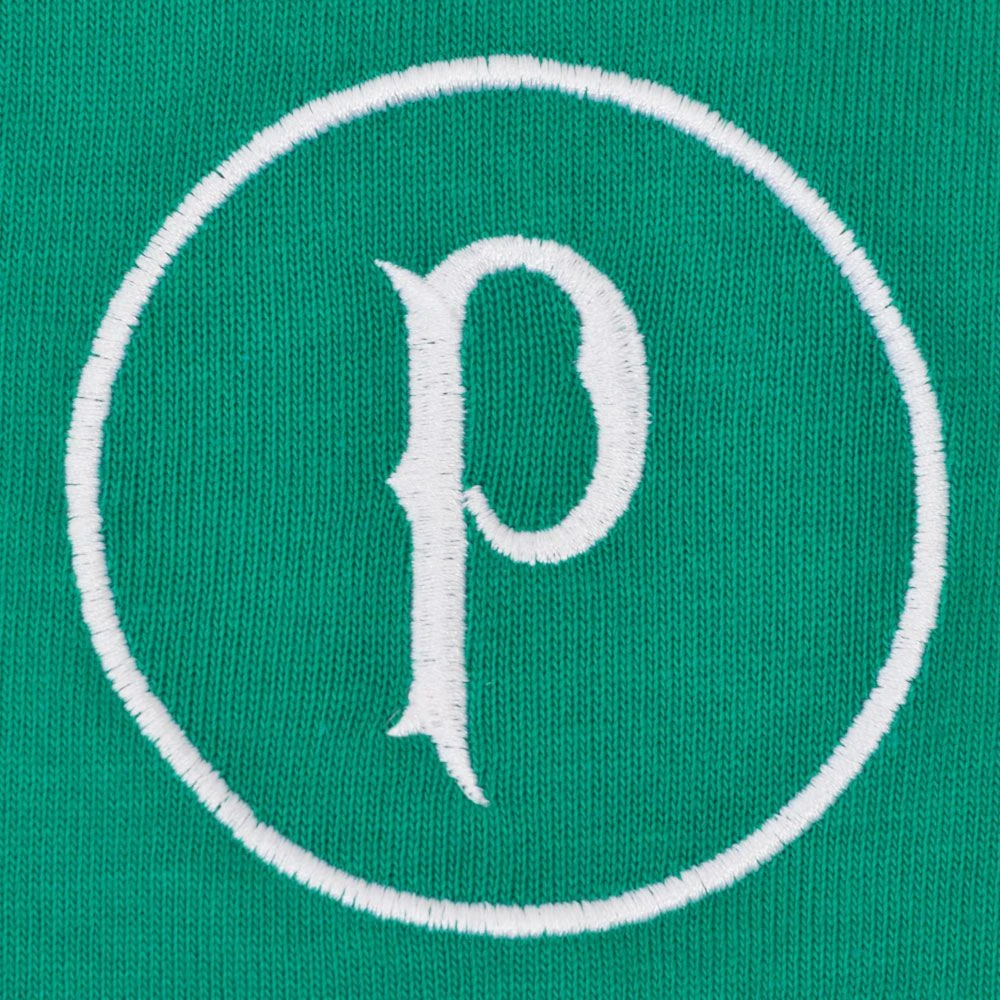 The shirt features a rich, deep green colorway characteristic of the club’s identity, accented by a crisp white V-neck collar and matching sleeve cuffs. The center-piece is the high-definition embroidered Palmeiras badge, ensuring durability and style that lasts as long as the memories of the game.