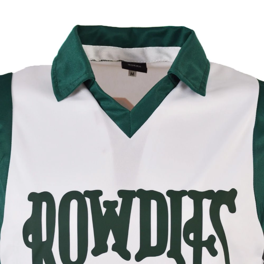 This classic replica features a crisp white body made from high-quality ladder-resist polyester. The jersey is defined by its striking bottle green side panels that run down the body, complemented by a matching bottle green v-neck and structured collar. The chest prominently displays the iconic, heat-sealed ‘Rowdies’ wordmark logo, ensuring the same professional look as the original match-worn kits from the 1988-89 season.