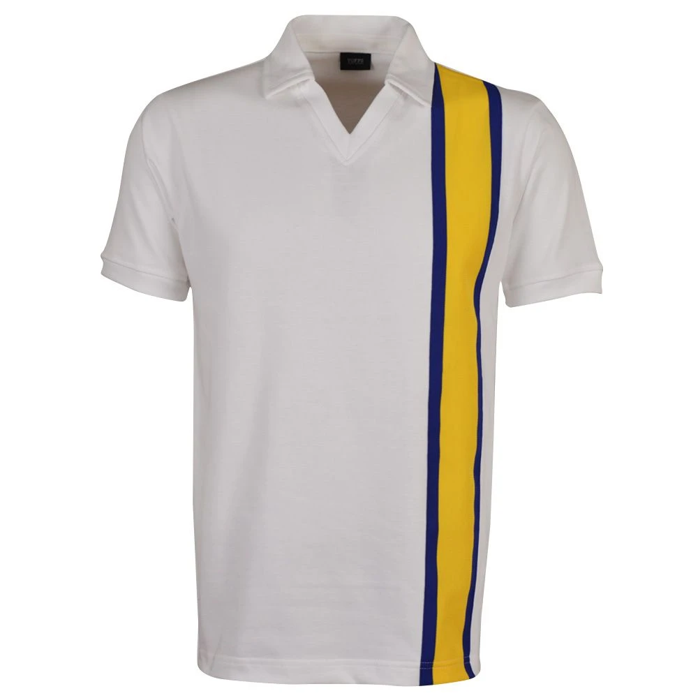 This iconic shirt features the striking primary yellow hue synonymous with Torquay’s history, accented by a bold blue contrast collar and matching sleeve cuffs. The design reflects the timeless aesthetic of the 1974 season, offering a clean and vintage terrace look.