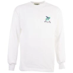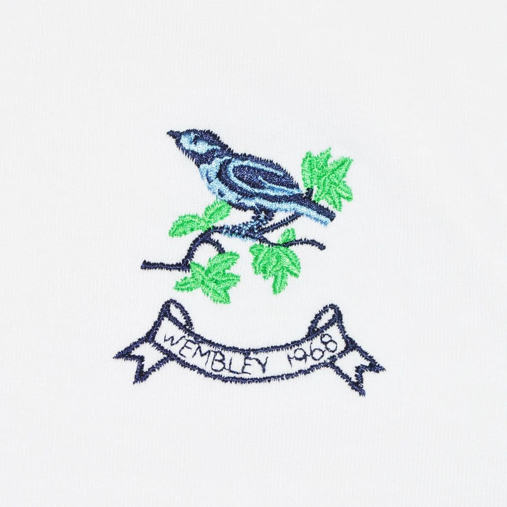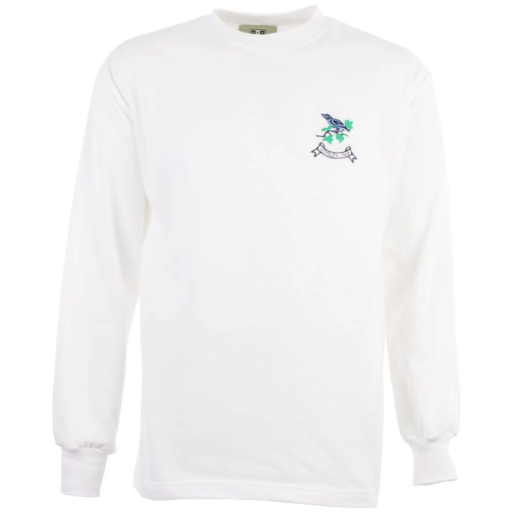 Crafted to replicate the original match-day aesthetic, this shirt features a crisp, all-white finish with a classic V-neck collar and long sleeves. The chest is adorned with a meticulously embroidered historic throstle badge, providing a high-quality vintage look that captures the heritage of the 1960s.